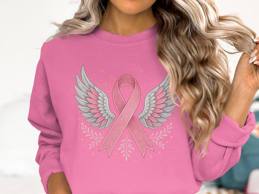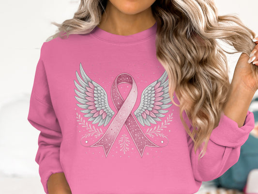 Angel Wings Pink Ribbon Awareness Collection Apparel | Sweatshirt | T-Shirt | Hoodie