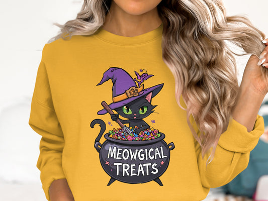 Halloween Cat with Cauldron Graphic Print |Sweatshirt | T-Shirt | Hoodie