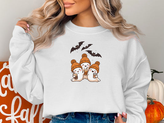 Cute Ghost Trio with Beanies and Bat Friends Sweatshirts |Sweatshirt | T-Shirt | Hoodie